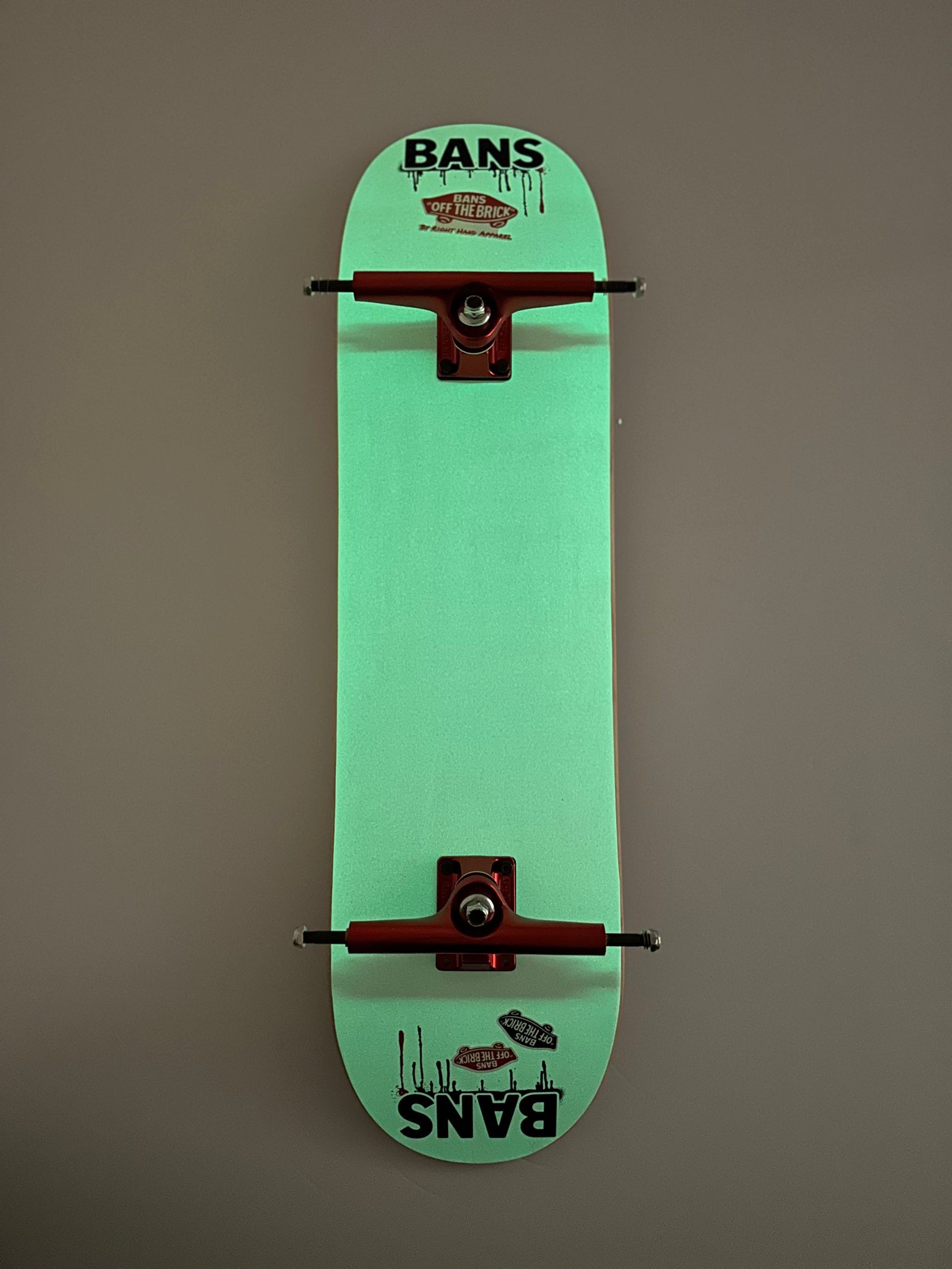 Custom Made Glow In The Dark Graphic Skateboard Without Grip Tape. Designed By Right Hand Apparel.