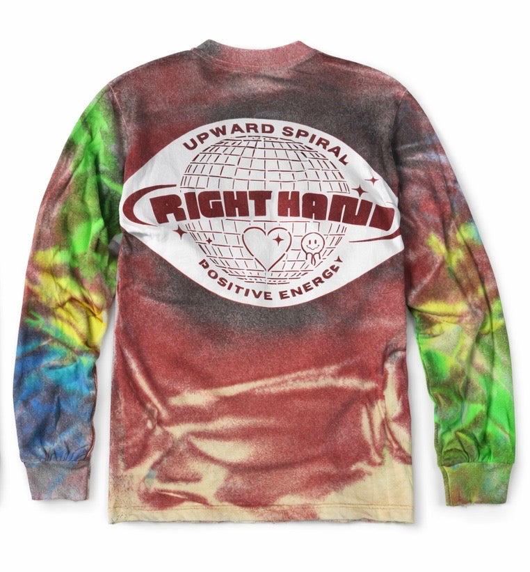 Another classic one of one by Right Hand Apparel. This long sleeve features a vintage wash with custom multi color design.